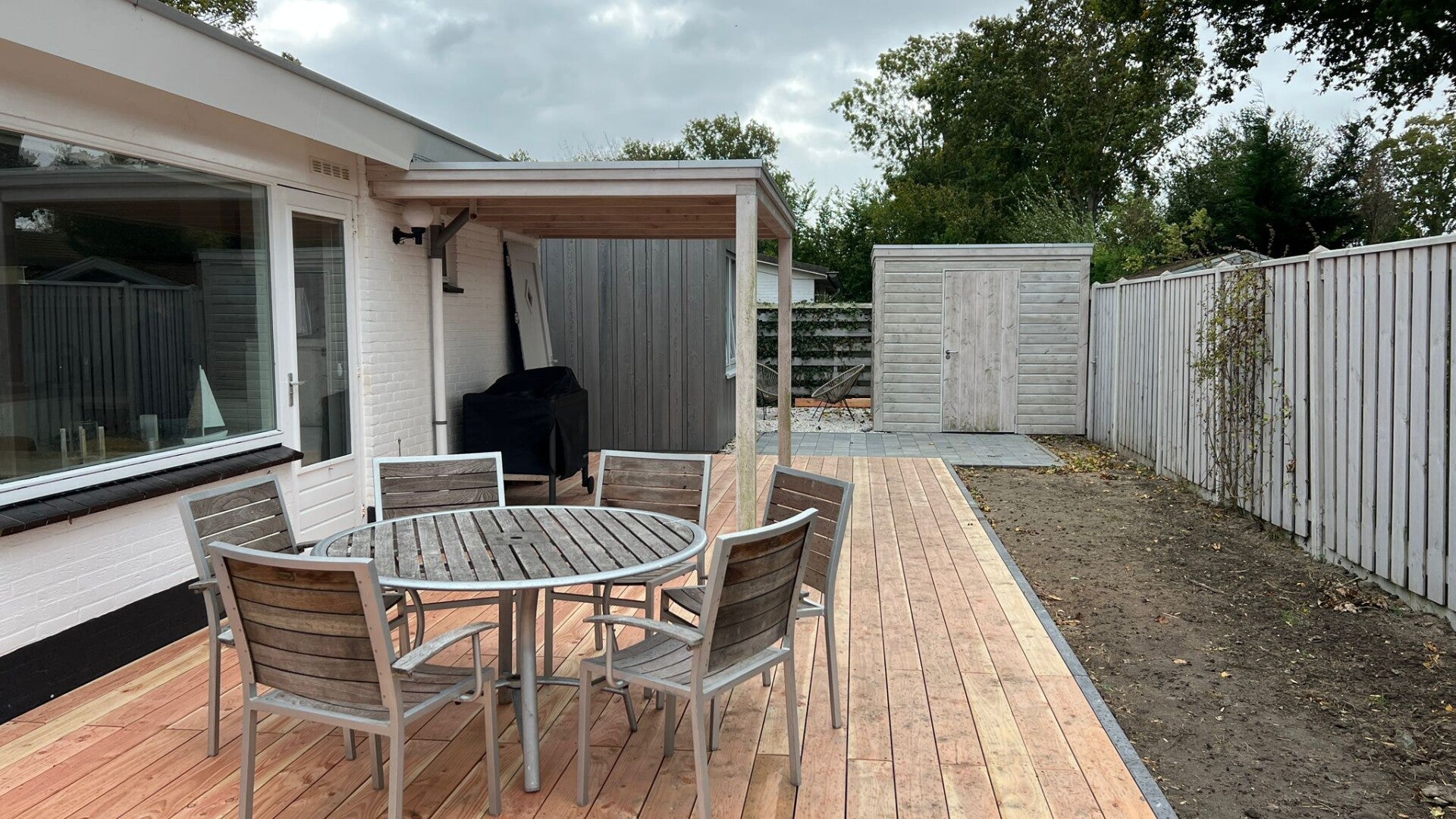 Genießen Sie die Sonne oder entspannen Sie im Schatten auf den zwei geräumigen Holzterrassen: Eine Ostterrasse mit ca. 15 m² und eine großzügige Westterrasse mit ca. 40 m². Ein Teil der Westterrasse ist überdacht. Ein Holzkohlengrill steht für Sie auf der Terrasse bereit. Die Terrassen werden Anfang 2026 mit weiteren Gartenmöbeln augestattet.